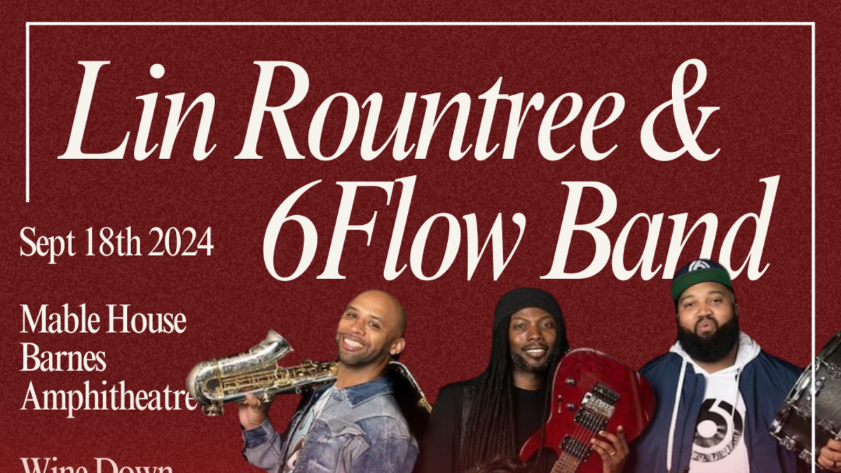 Wednesday, September 18, 2024, 07:00pm Location : Mable House Barnes Amphitheatre Contact : 770-819-7765 Free Wine Down Wednesday - An Evening of Jazz Lin Rountree & 6Flow Band Show Time: 7:00 PMDoors: 6:00 PM