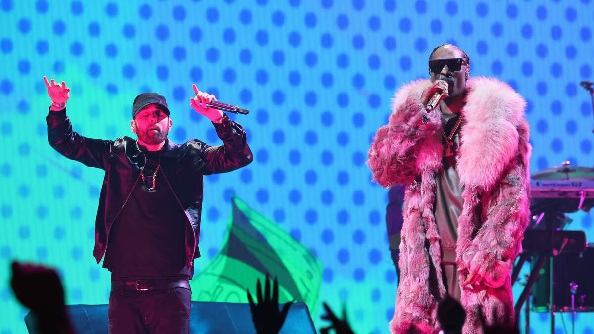 Eminem appeared on his manager, Paul Rosenberg’s podcast, “Paul Pod,” on Sirius XM. On the podcast, Eminem explained how he and Snoop Dogg called a truce in their feud. “Me and Snoop had our little issue and then Dre, when Dre had that brain aneurysm thing,” Em explains, “we were like, ‘oh this is stupid. This is stupid as hell to be feuding right now.’” Dr. Dre was hospitalized for a cerebral aneurysm in January 2021. The monumental producer was instrumental in both Eminem's and Snoop Dogg’s careers. “I think that there was a miscommunication at the time, in regards to him being on my album,” Eminem says, “I think he had wanted to do something with me,” but the opportunity didn’t happen for Snoop, and his team took it as a diss.